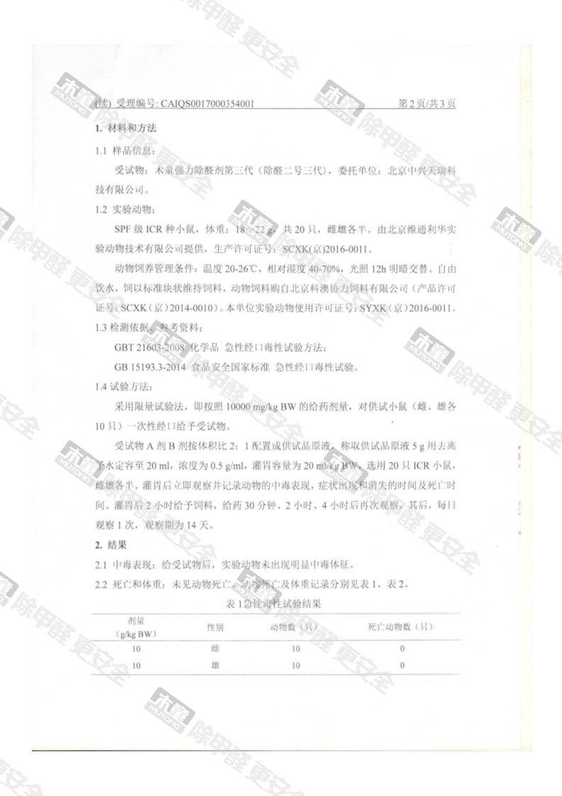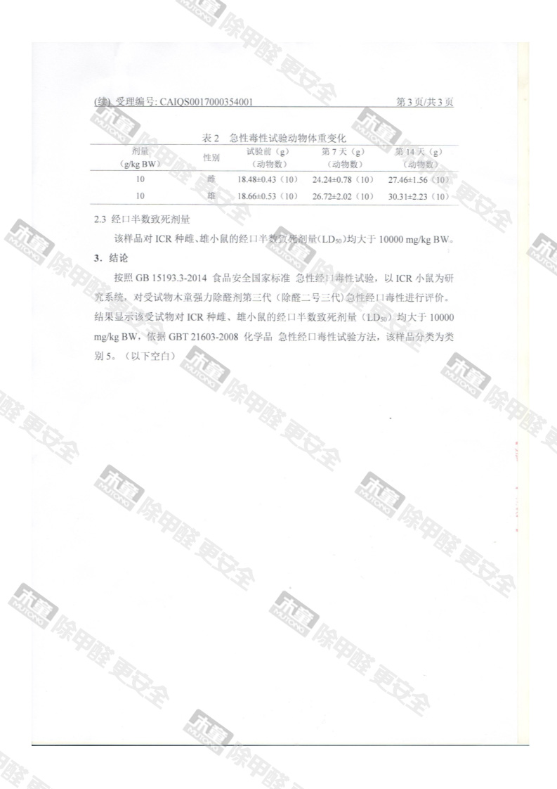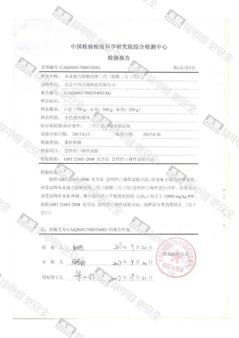 木童除醛2號三代安全性檢測報告