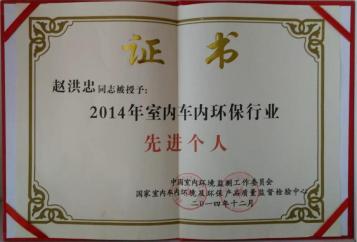 2014年室內(nèi)車內(nèi)環(huán)保行業(yè)先進個人證書