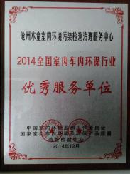 企業(yè)榮譽:2014年全國室內(nèi)車內(nèi)環(huán)保行業(yè)優(yōu)秀服務(wù)單位